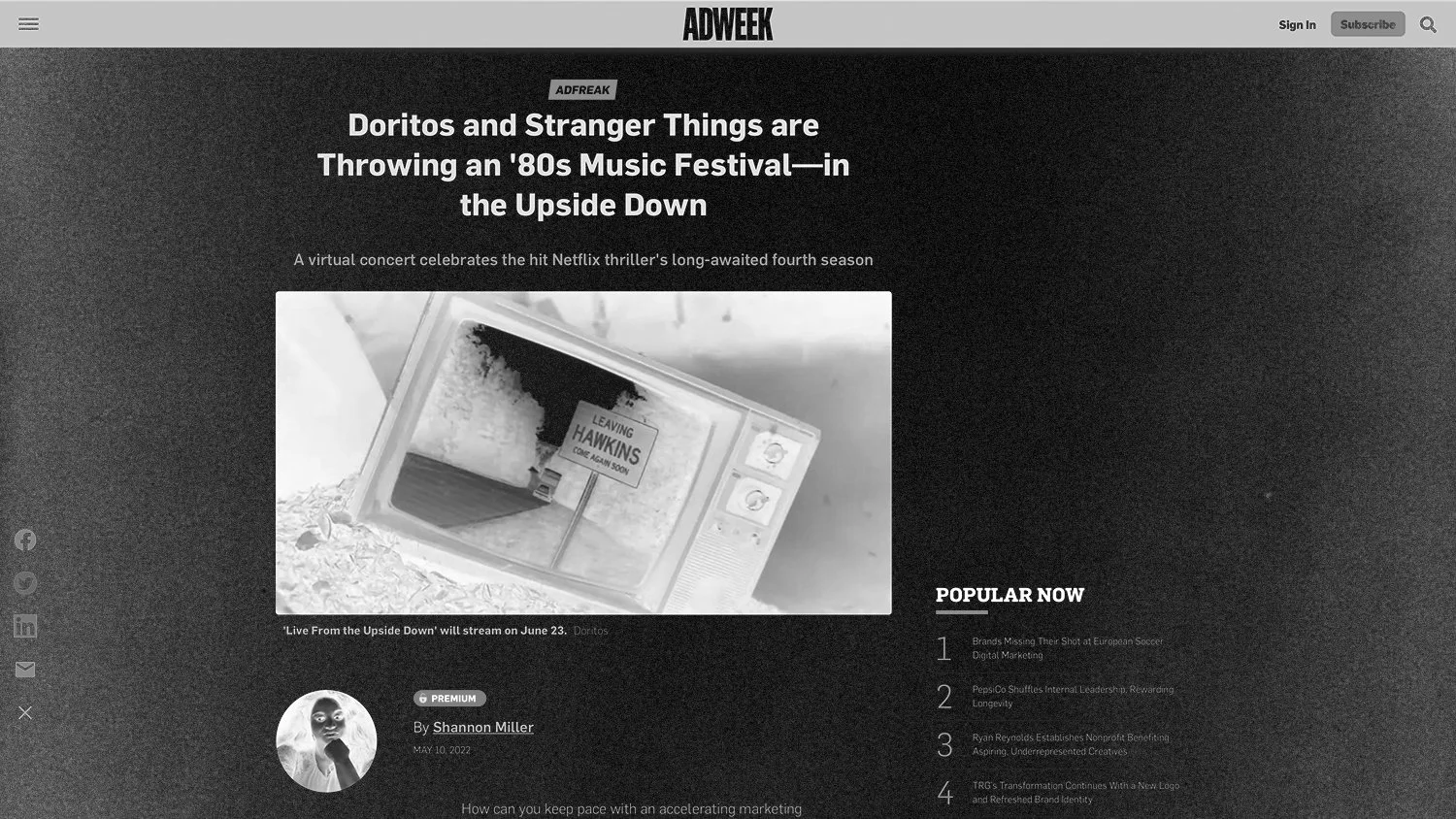 We crafted a storyline about a typical 80s music festival, the Doritos Music Fest '86, which was mysteriously cancelled after passing through a little town in Indiana called Hawkins.
